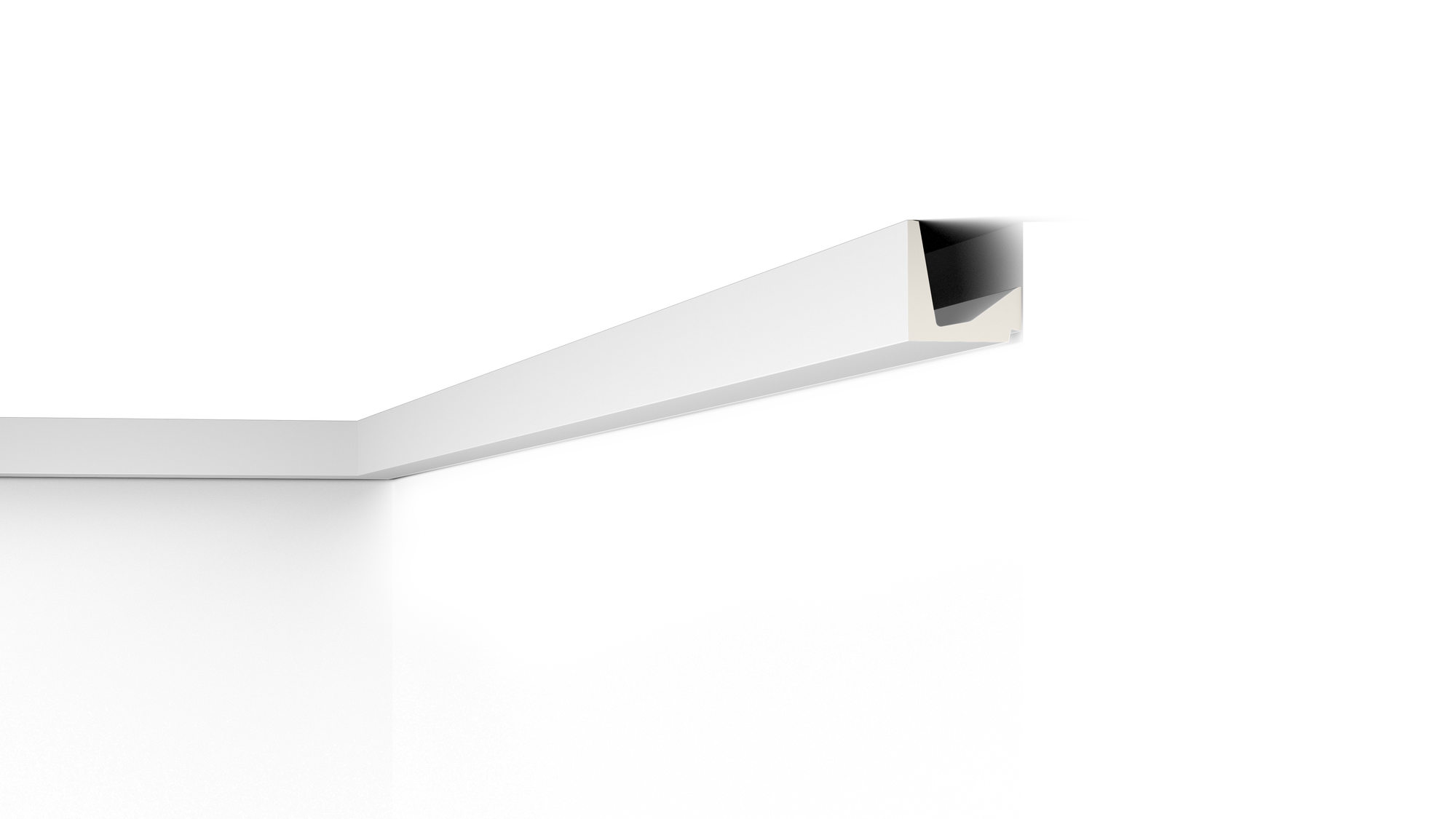 Dekoracyjna listwa przysufitowa przeznaczona do zastosowania jako element montażu lub ukierunkowania oświetlenia LED.