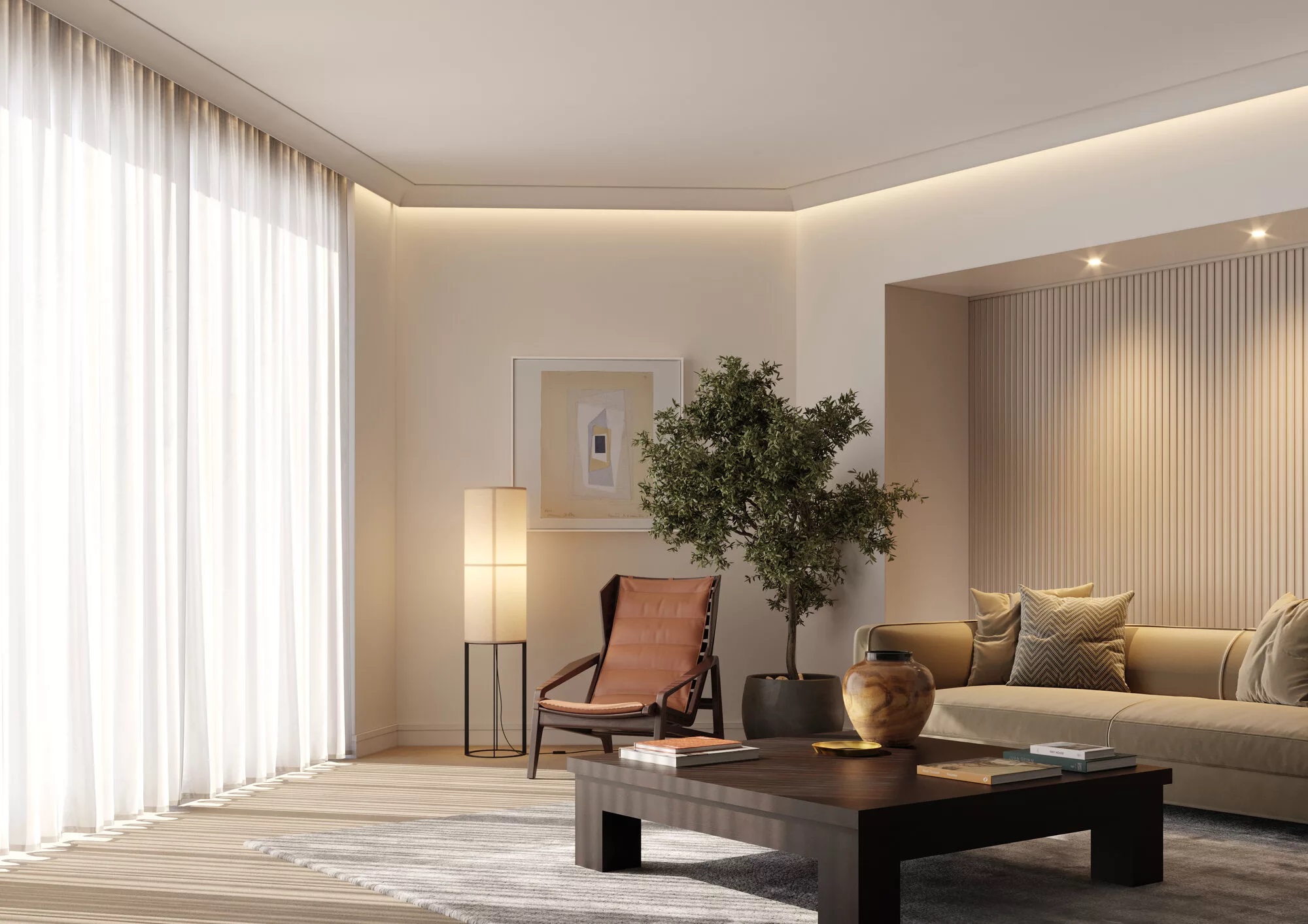 Dzięki listwom przysufitowym z podświetleniem LED możesz uzyskać bardziej równomierne i rozproszone światło, które skutecznie oświetli całą przestrzeń - czego tradycyjne lampy sufitowe często nie są w stanie zrobić. Jest to szczególnie przydatne w przypadku salonów, jadalni i innych większych pomieszczeń, gdzie równomierne oświetlenie jest istotne.