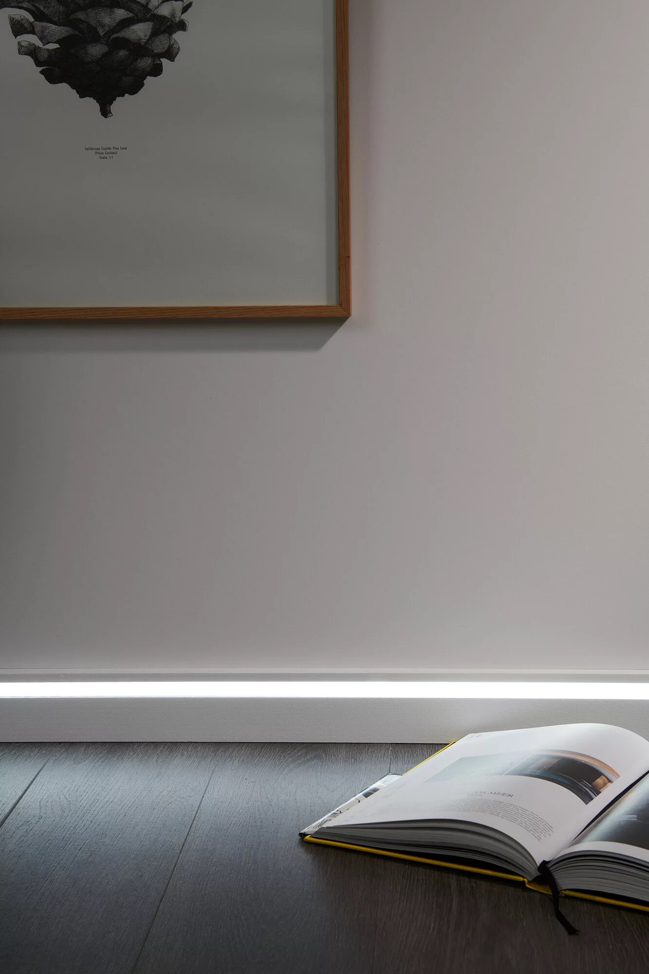 Poniżej oświetlony fragment ściany z tapetą, przy użyciu listwy przypodłogowej z profilem podświetleniowym IL10 WALLSTYL.