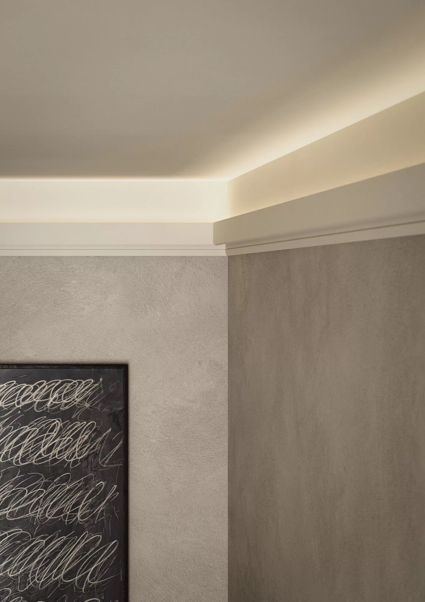 Jeśli preferujesz delikatniejszy i bardziej rozproszony efekt oświetleniowy, wybierz listwę przysufitową IL5 ARSTYL i zastosuj ją na ścianie - jak na poniższej inspiracji: